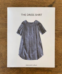 A sewing pattern for a dress shirt, inspired by a classic gentleman's shirt. Features a front pleat, a lined yoke and a gathered back. It has two sleeve options: short or rolled up. Detailed instructions and material list included.